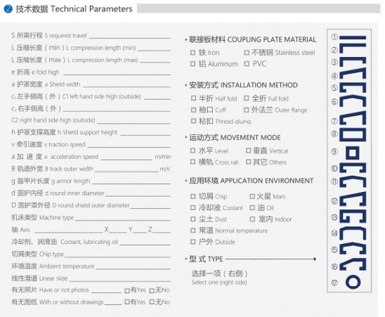 風琴防護罩布料材質參數表