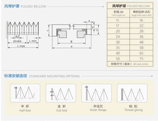 風琴護罩均可以水平。豎宜或橫向使用。保持運行平穩且無噪音。通過使用厚度小的原材料可以使其壓繾達到現代機械狹 小工作空間的要求。風琴護罩表面光滑。造型規則。外觀優美,為機床外形增添色彩為機床提髙檔次。風號護罩不同樣式之間 差別很小,主妾有兩種型式,-種是百葉型(俗稱:一字型),一種是“U-型,傾斜或腫型的外形改善了液體的排放狀。